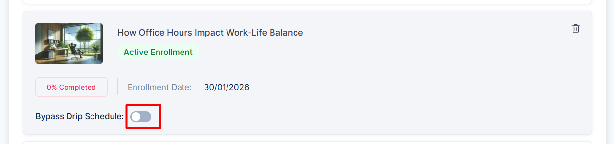 Drip Schedule lets you control how students access your course content. You can choose to release entire sections on specific dates, or unlock them automatically a set number of days after enrollment.