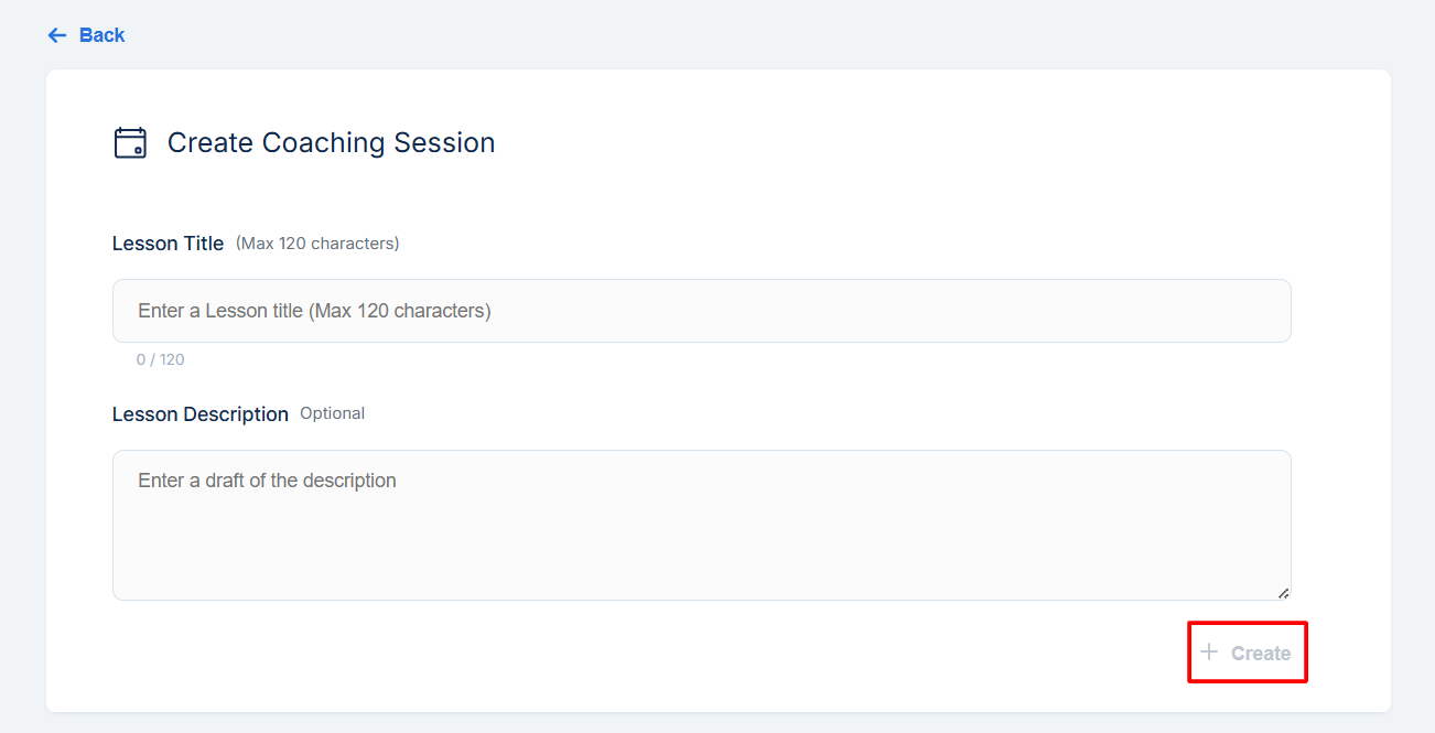 On the next page, input your lesson title, and lesson description and click Create.