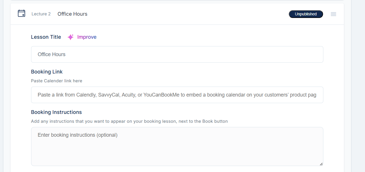 On the next page, open up the lesson and enter your booking link and booking instructions.