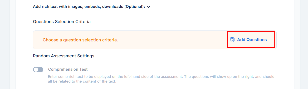 Being a random assessment, questions would differ from one student to another, so you can add a comprehension text to guide your students while taking the assessment.