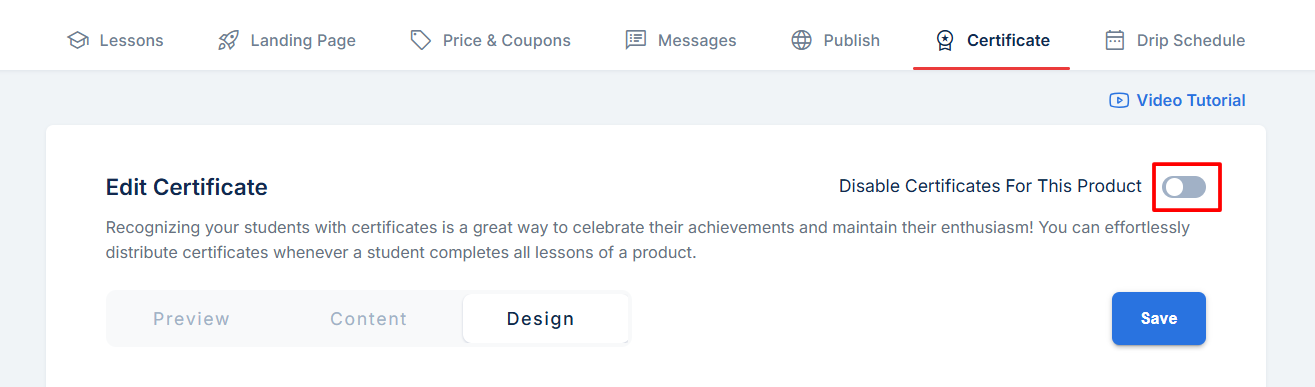 If you do not want to offer certificates for your course, you can always click the button to disable certificates.