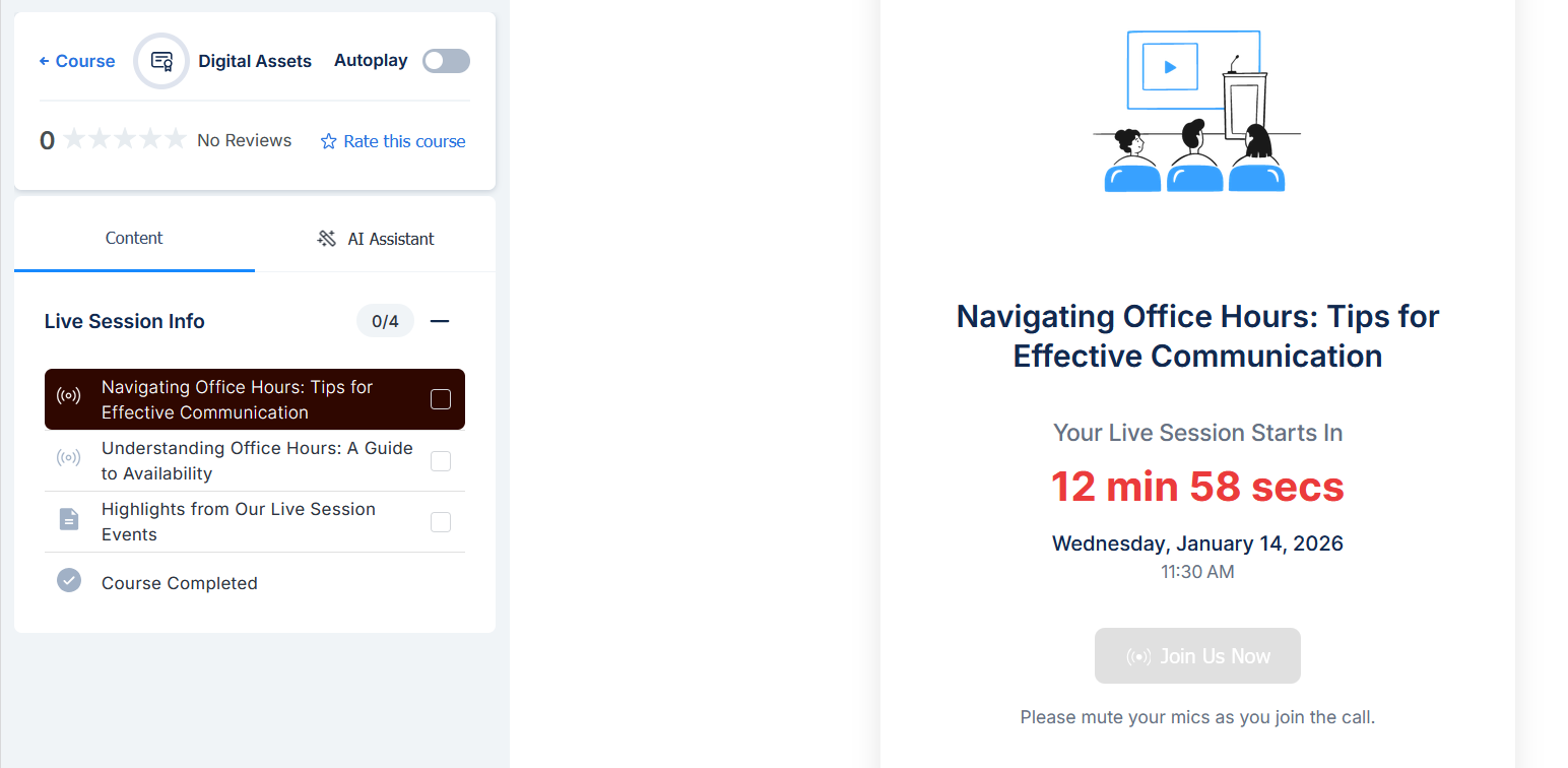 If a live session has not started, your students will get a disabled Join button, but when it starts, they will be able to join the meeting.