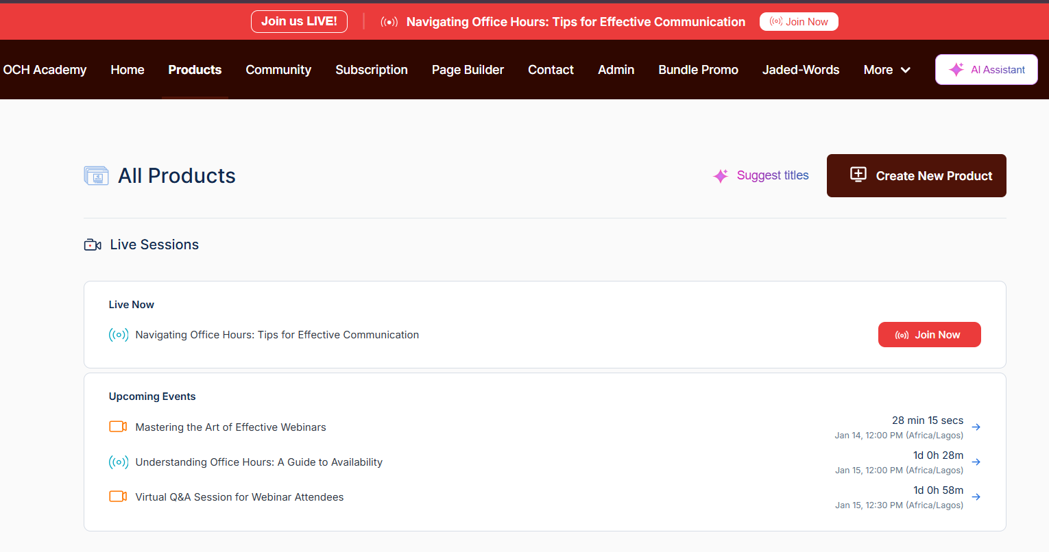 Live sessions and webinars allow you to deliver real-time learning experiences, engage directly with your students, and create interactive moments inside your academy.
